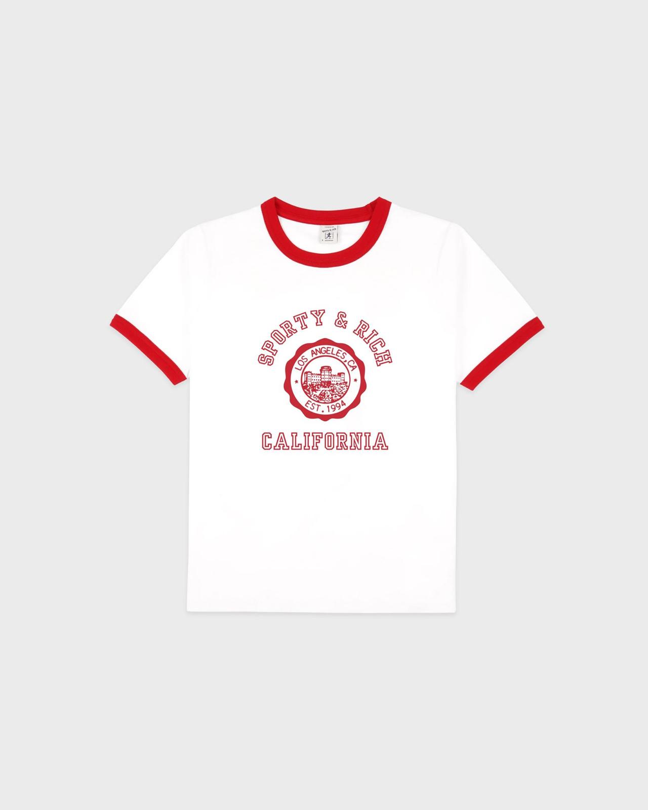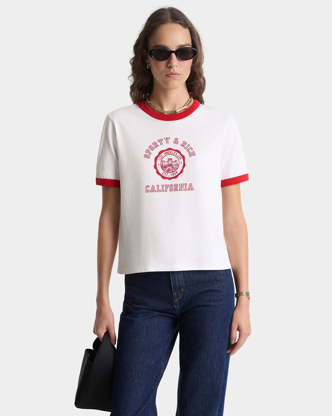 Sporty & Rich California Emblem Ringer Tee – White/Ruby
